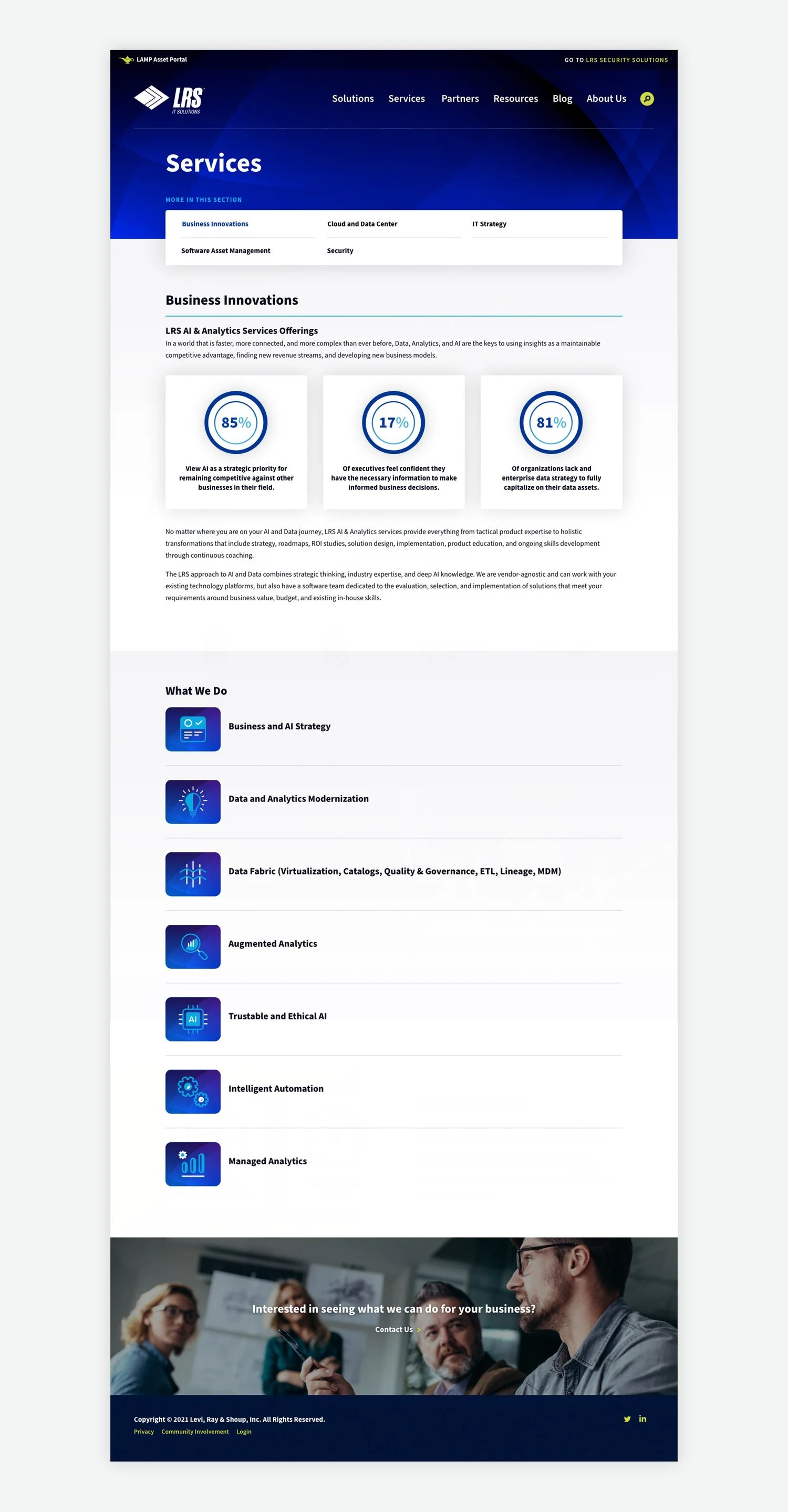LRS IT Solutions provides analytic reviews, hardware support, security solutions, and a variety of other business services for helping companies optimize their digital infrastructure. They approached our team looking for a dynamic, modern web design to reflect their leading position within the industry.